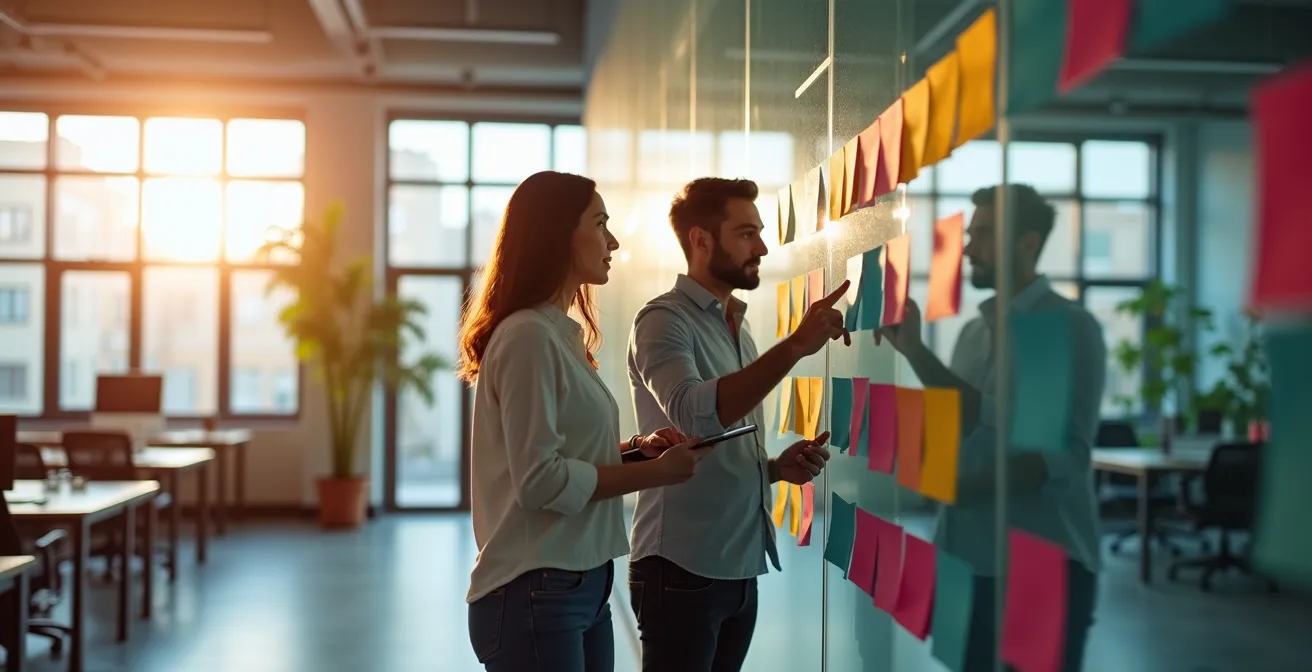 Plutôt qu’un calendrier, pensez « pipeline ». La méthode Kanban est particulièrement adaptée. Elle visualise le workflow en colonnes (ex: Idées, Brief, En rédaction, En validation, Prêt à publier, Publié) et chaque contenu est une carte qui se déplace de gauche à droite. Cette approche offre plusieurs avantages décisifs pour une production intensive : elle identifie immédiatement les goulots d’étranglement (une colonne qui s’engorge de cartes) et offre une flexibilité totale pour gérer les priorités sans casser toute la planification. Des entreprises structurées améliorent ainsi leur visibilité et obtiennent une analyse plus fine des performances de leurs publications.